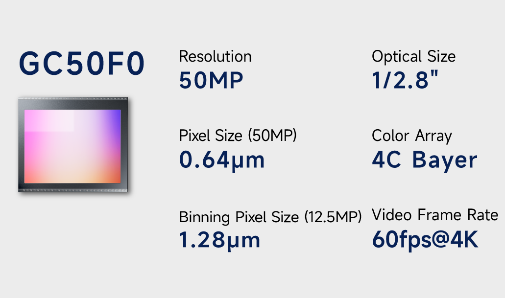 GC50F0: High-performance 0.64μm 1/2.8" 50MP CIS, compatible with various smartphone cameras