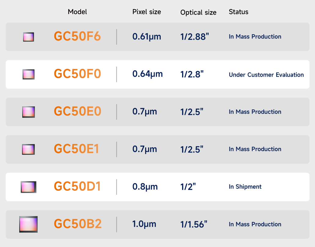 With the launch of GC50F0 and GC50D1, GalaxyCore expands its high-resolution image sensor lineup, offering multiple pixel size options to meet different smartphone camera needs.